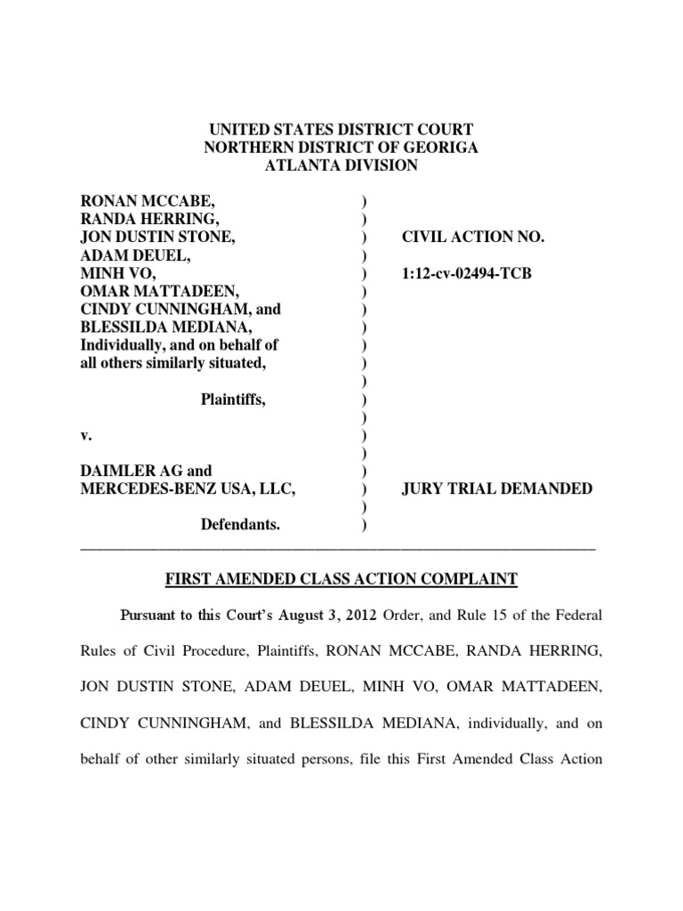 Mercedes Fuel Tank Class Action Amended Complaint Final
